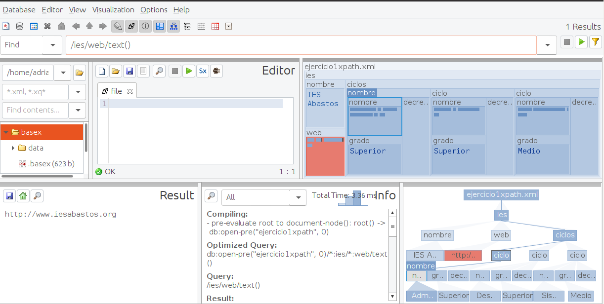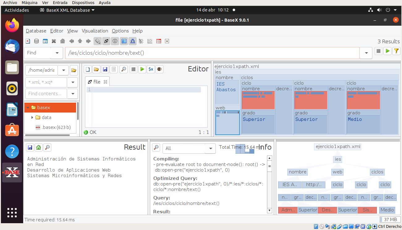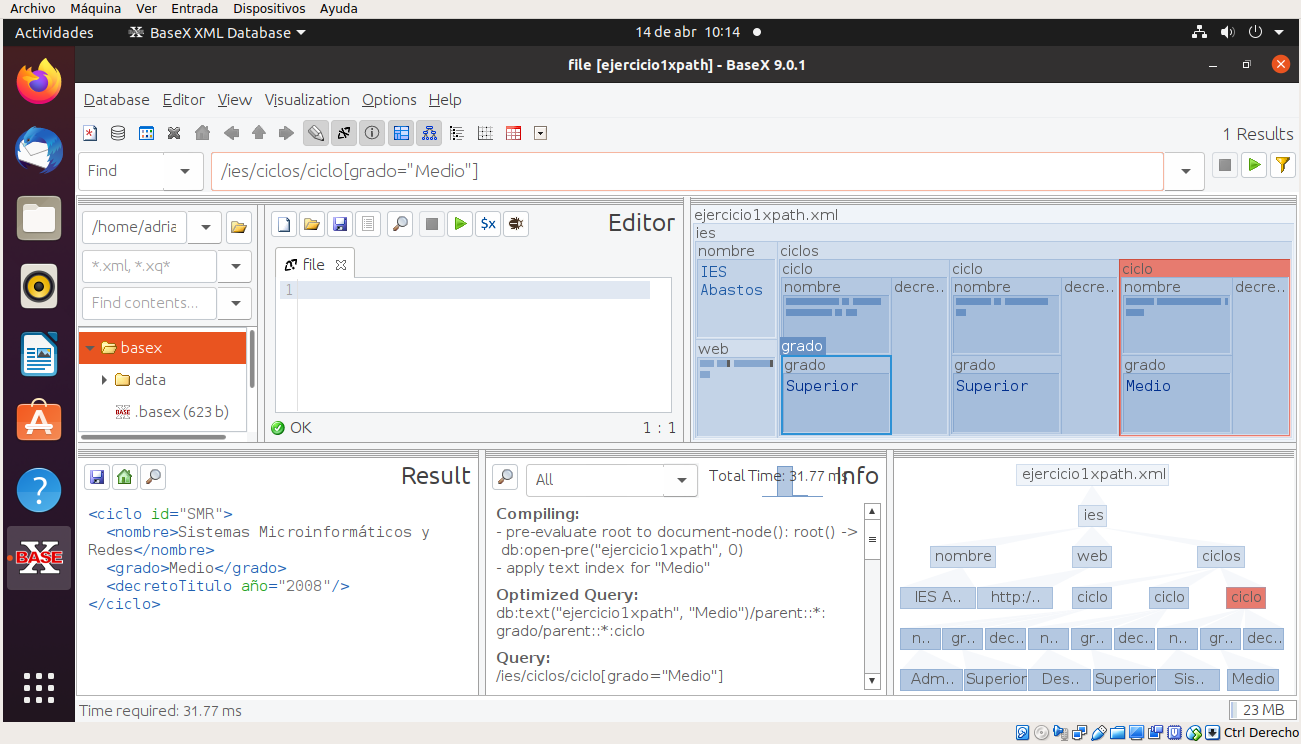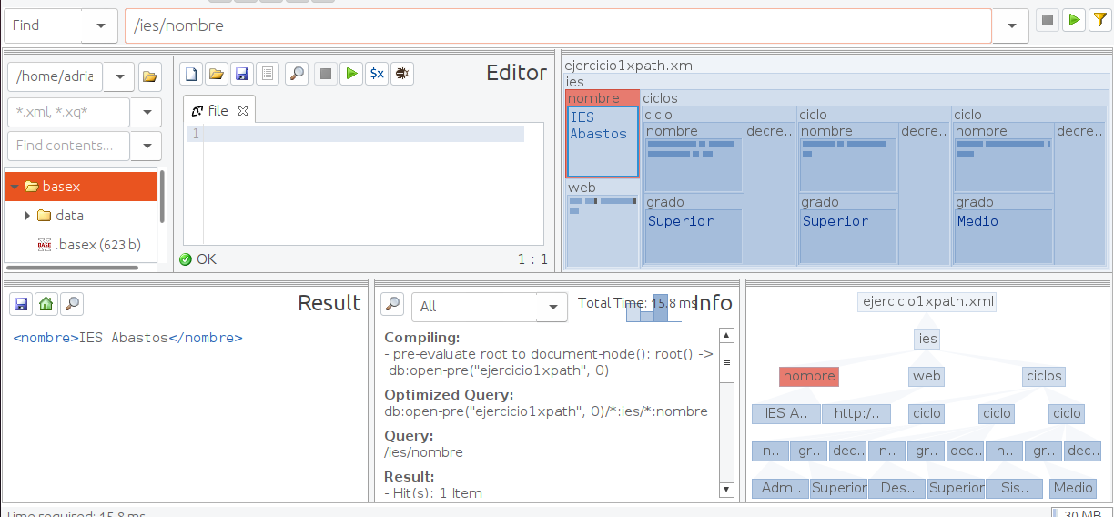 - Ruta xpath:/ies/ciclos/ciclo[grado="Medio"]